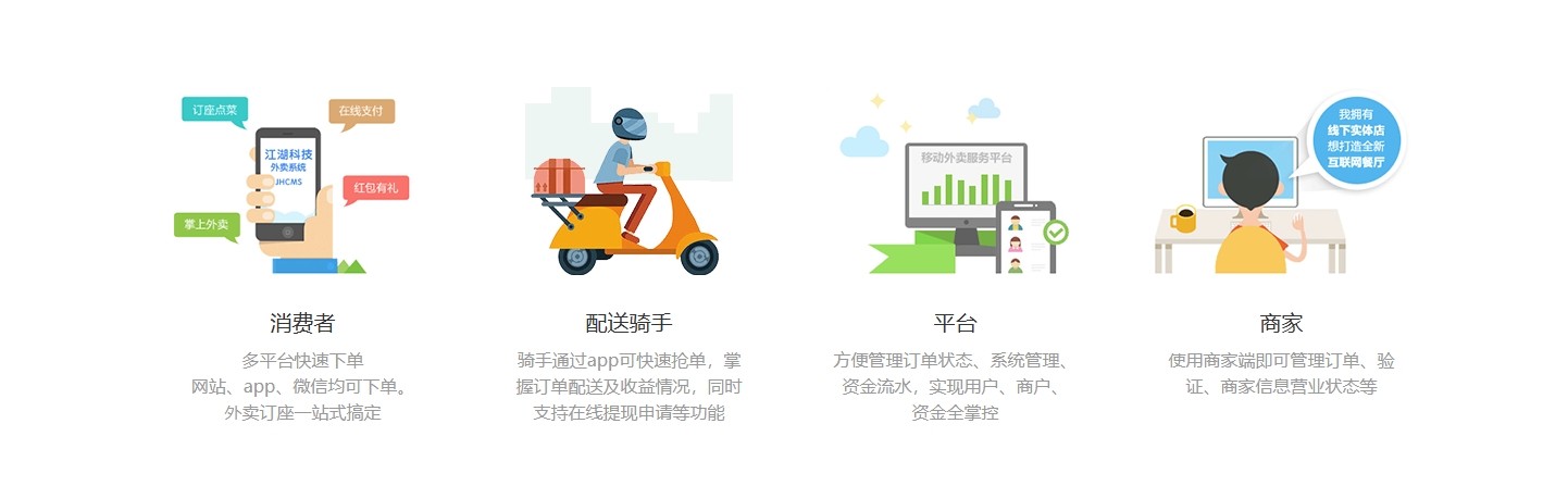 外卖订餐系统极其在乎品质和用户体验,为不同角色提供全方位的服务,趋向终端与服务一体化,实现终端多样化
